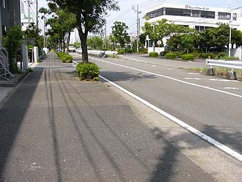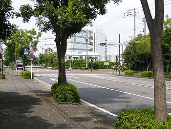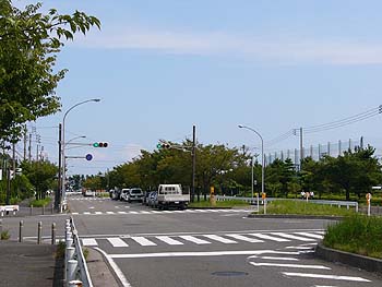|   | 交差点を曲がり真っ直ぐ向かいます。この辺に化学工業団地前バス停があった可能性もあります。 |