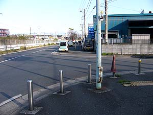|   | ここで線路沿いの広い道に合流。信号機も無い交差点でバスは曲がっていました。交通量や見通しを考えれば今バスを運行するとなれば信号機が必要かもしれません。 |