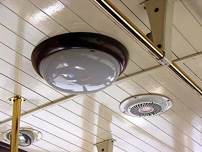 天井も車内灯もレトロに徹しています。 |