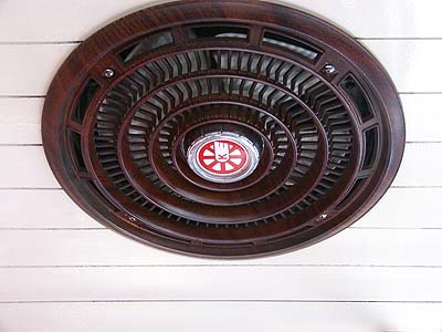 ベンチレーターにも旧社紋入り。手抜きの無い造りに感心します。 |