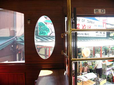 中扉横にも楕円窓。この窓がレトロ感を醸し出します。 |