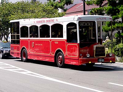 車体上部には運行区間の表示。大塔宮へ運行している時は当然その表示がありました。 KAMAKURA・DAIBUTSU・HACHIMANGU・DAITONOMIYAと表記されていました。 |
