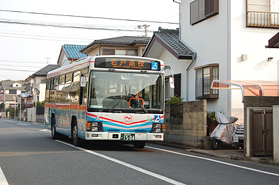 スクールバスはYRP方面に回送されるバスと岩戸団地方面に回送される便があります。このバスはYRP方面に向かいました。 |