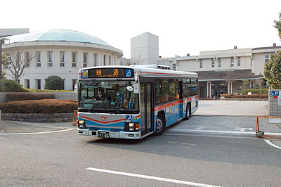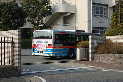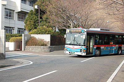バスは校内に入り折り返します。以前は正門側から入っていました。 |