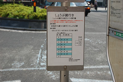 2008年6月1日から30日まで汐入駅〜しょうぶ園に臨時の直行バスが運転されました。10時台から17時台に毎時2〜3本程度の運転でした。 |