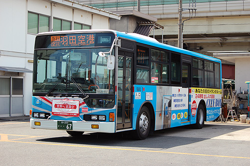 2010年8月1日から10月20日(予定)まで羽田空港第一ターミナル2階〜新国際線ターミナルに従業員輸送のバスが運転されました。 期間限定ということもあり、廃車寸前の経年車ばかりを使用していますが、専用車5台にもかかわらず、国内4大メーカー、ノンステップ、ワンステップ、ツーステップと揃い、 尚且つワンロマ車も使用という豪華ラインナップ。