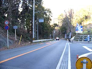|   | 県道23号線(原宿六浦線)合流部。正面が笹倉方面からの道。右側は朝比奈方面。写真には見えませんが更に右側から白山道循環線が合流します。 |