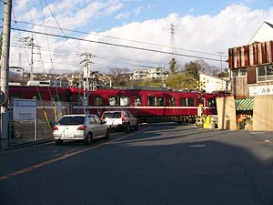 |   | 京急の六浦駅西側にある踏切。この路線のバスもかつてはこの踏切を通ったのであろう。 |